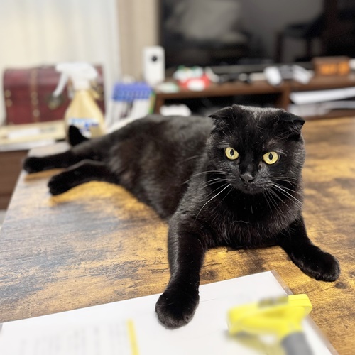ごはんよりも断然遊び!で休憩はテーブルの上なラッちゃんです。