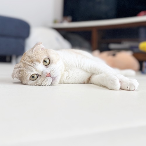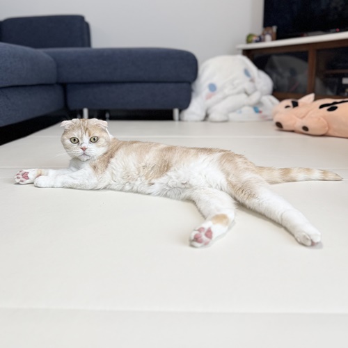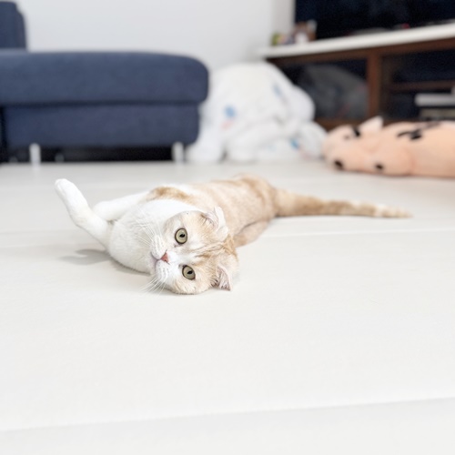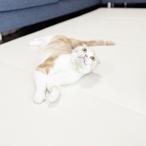 少し恥ずかしがり屋さんだとお伺いしていた、ちーちゃんですが、お打合せの時も余裕のコロンお腹見せ。
