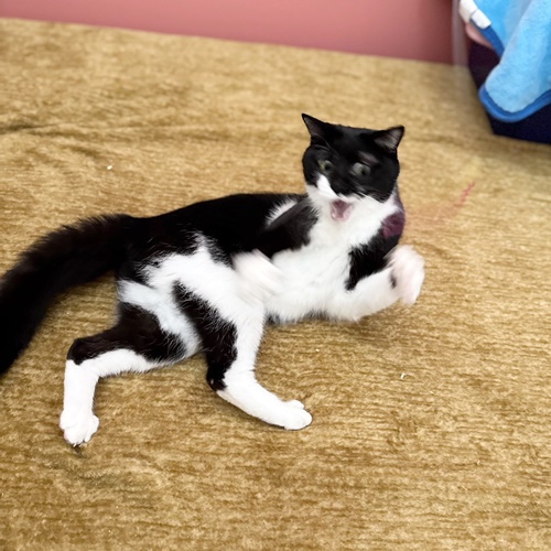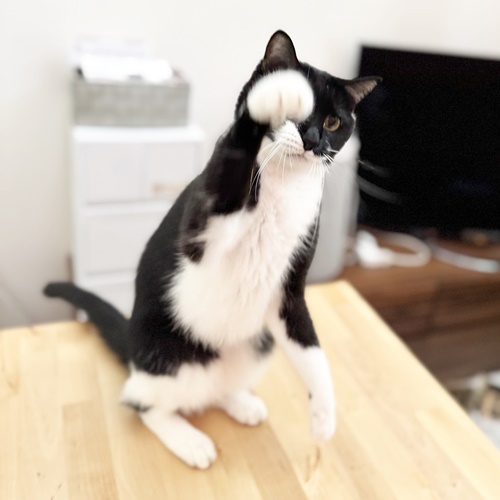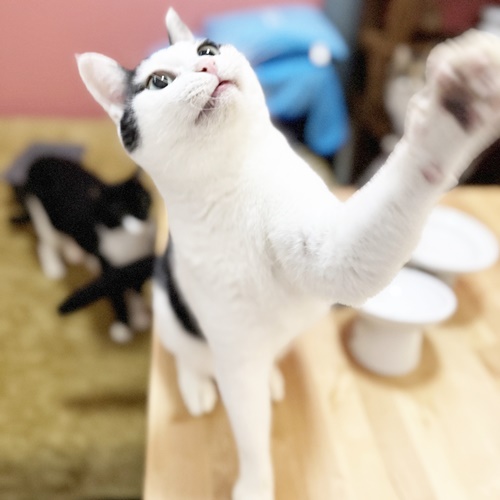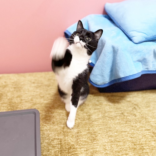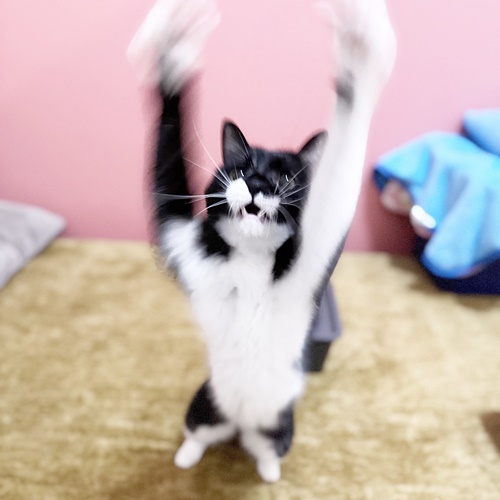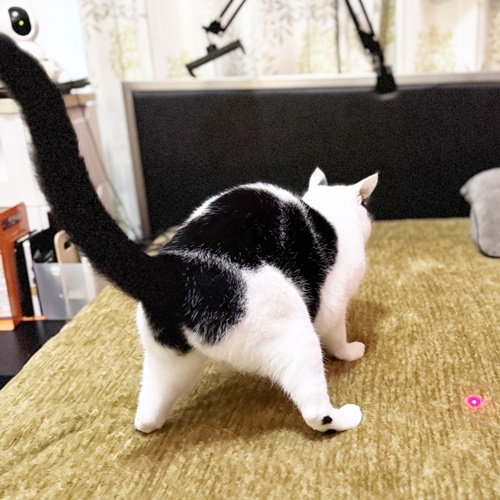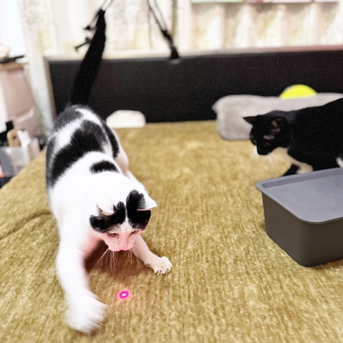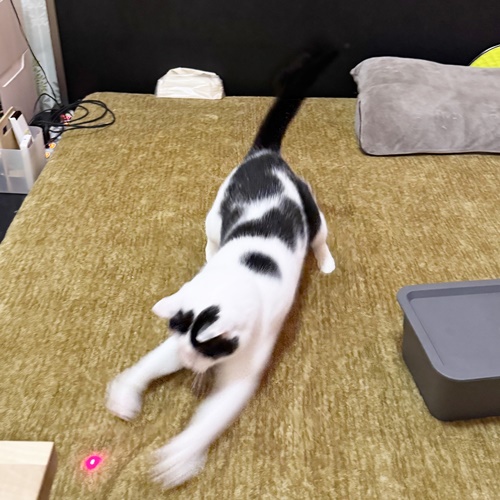 じゃらしオモチャでも楽しく遊んでくれますが、ぶちくんはレーザーポインターがツボだったようで、ものすごい勢いで走り散らかしておりましたw