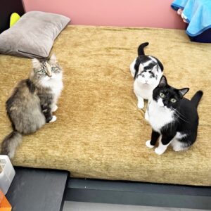 今回一緒にお留守番してくれたのは、ことね(通称こと:写真左)ちゃん、こまちちゃん(通称こまたん:写真右前)、ぶちまる(通称ぶち:写真真ん中奥)くんです。