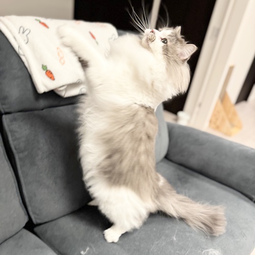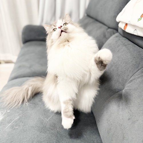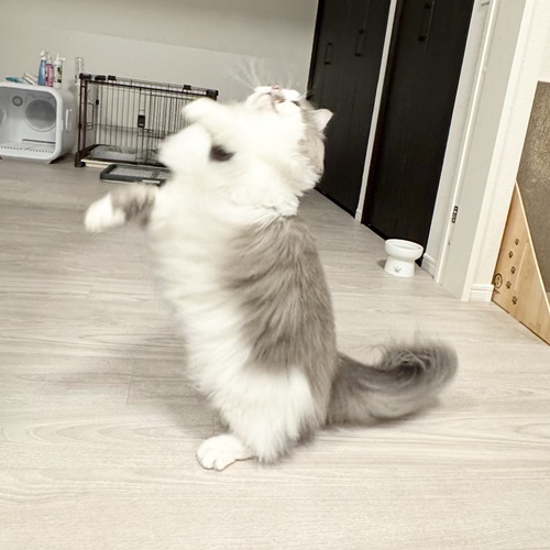 クルクル回って目も回っちゃうくらい回転しまくって、ゴージャスな毛をふぁっさ~!となびかせながら華麗に舞い、オモチャを強奪して逃走します。笑