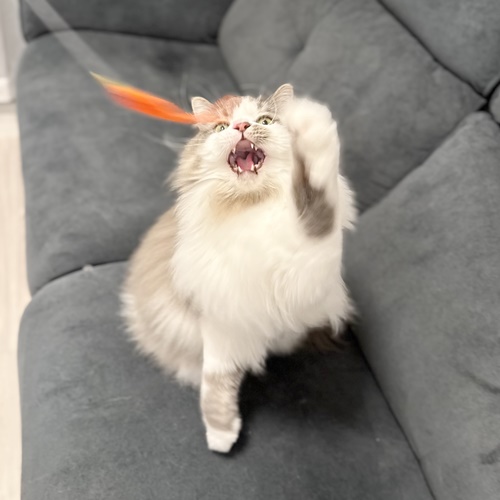 あまり遊ばないとお打合せの際にもお伺いしましたが、その場でオモチャフリフリしてみると、ものすごい食いつき!
