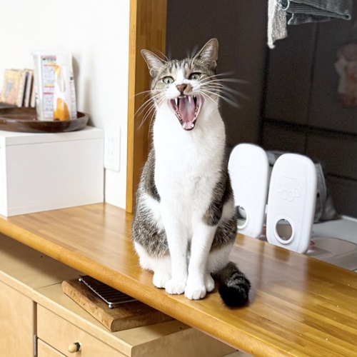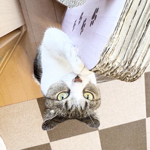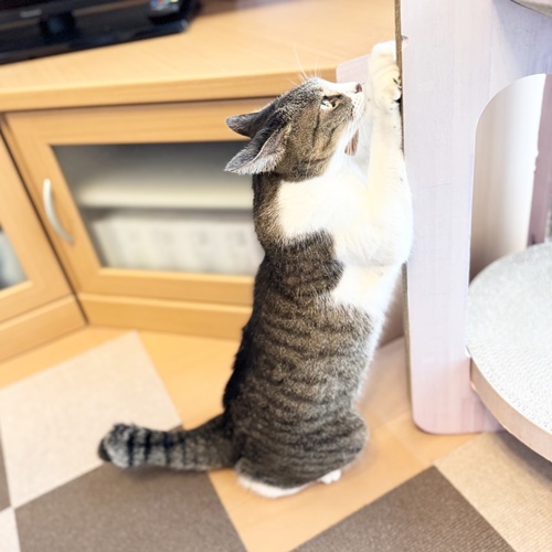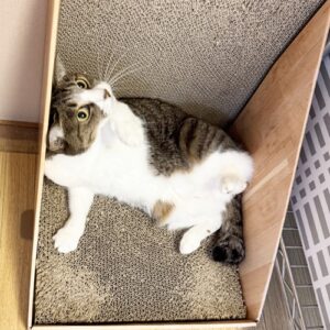 この爪とぎ、いつもはむぎちゃんが遊ぶ印象ですが、今回はゆずちゃんが張り付いて遊ぶ時間も多かったです。