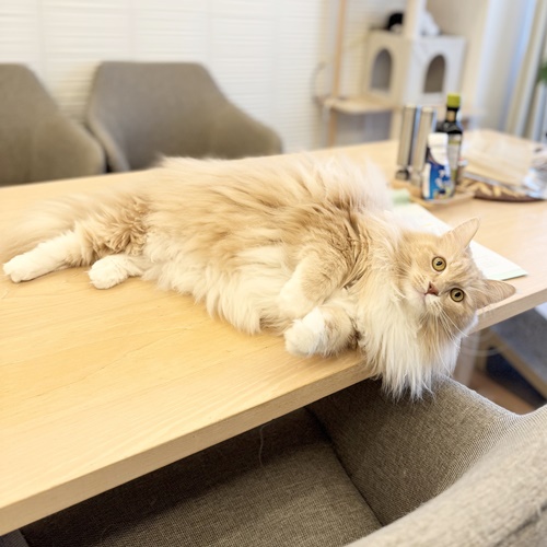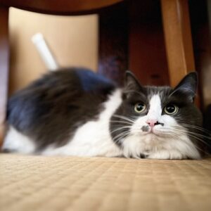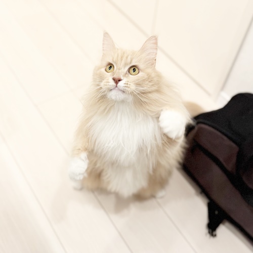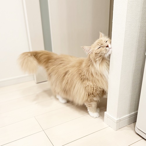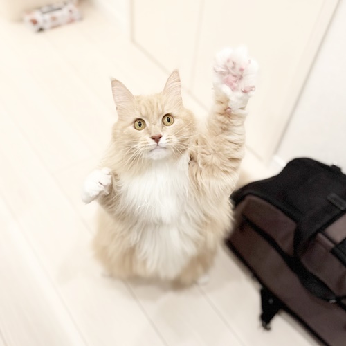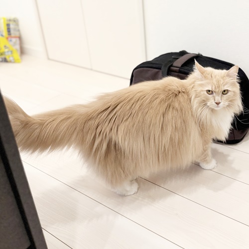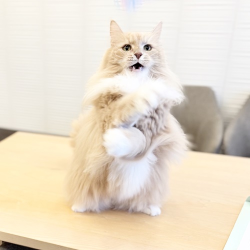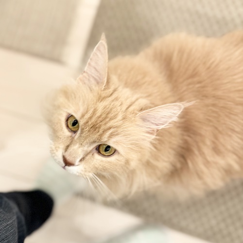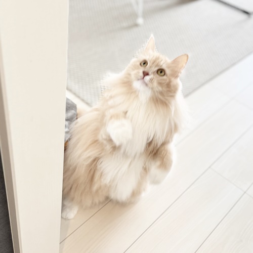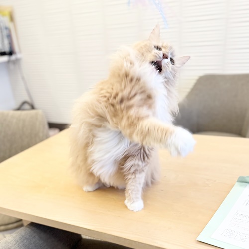 お伺いすると結構な確率で玄関までお出迎えに来てくれて、足にスリンスリン~っとしてくれるのですが、一定時間経過すると我に返るのかシャー!と始まります。笑