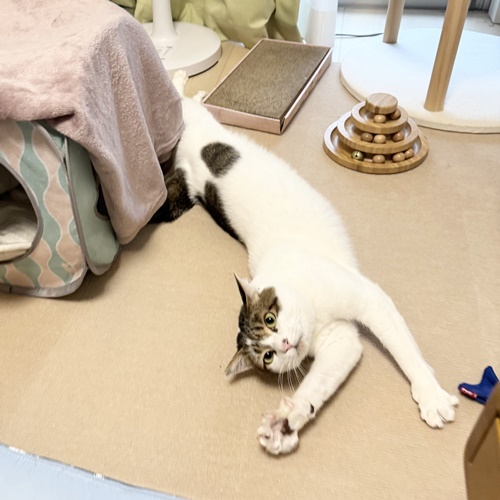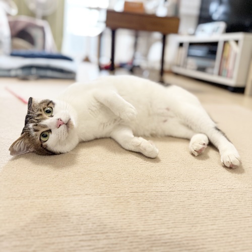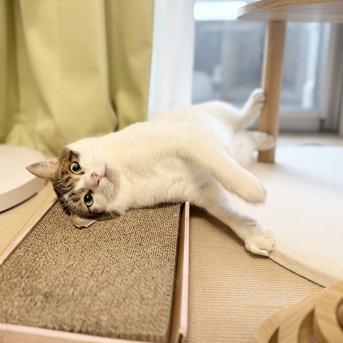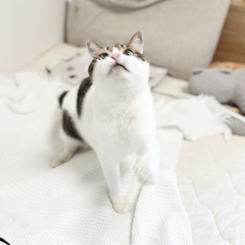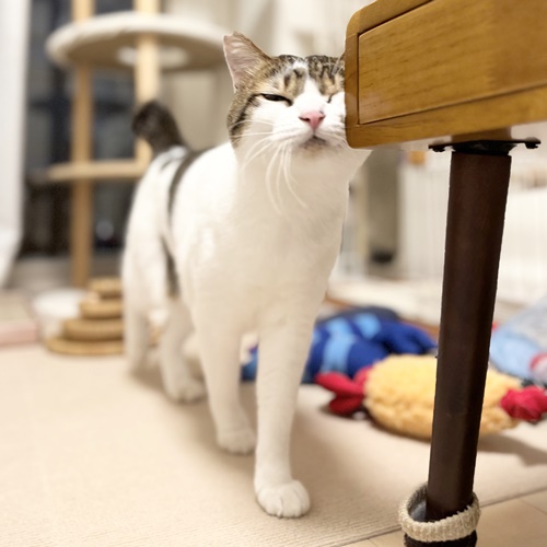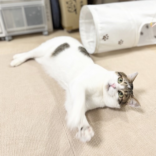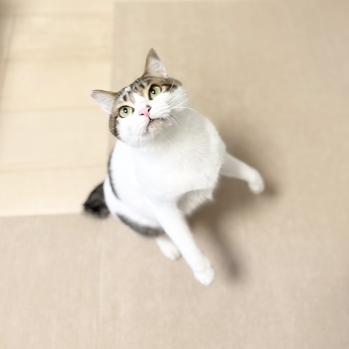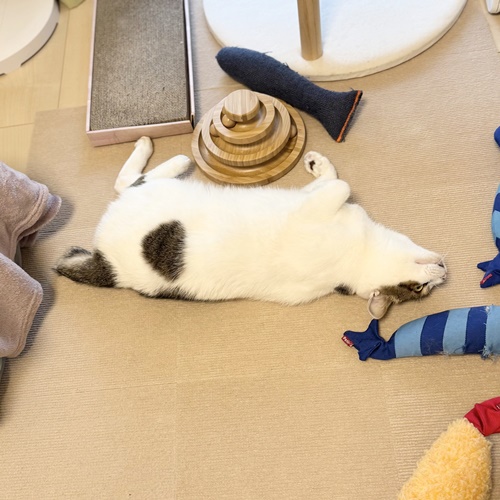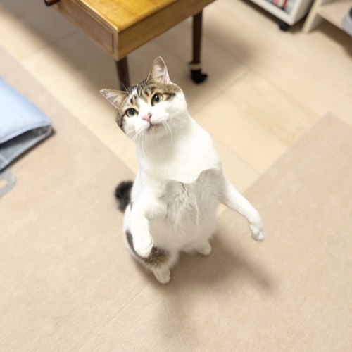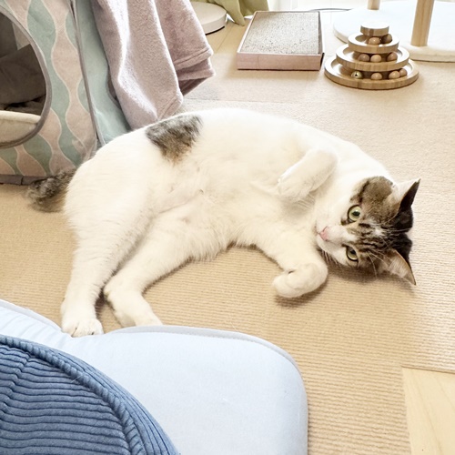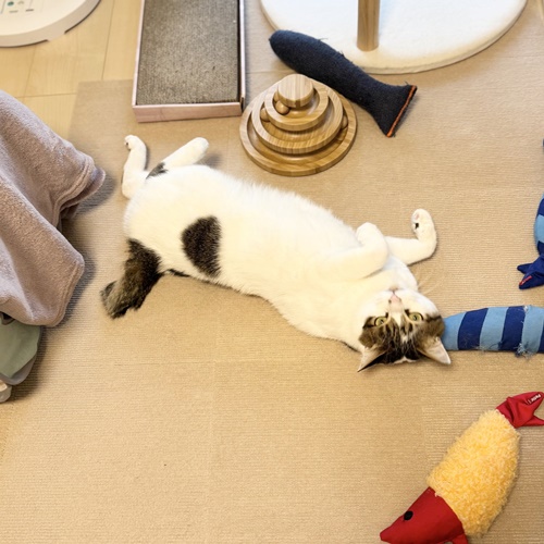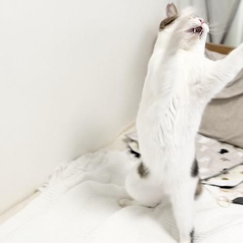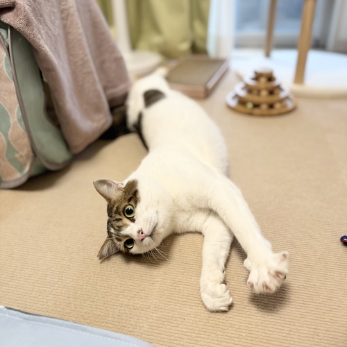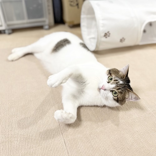 キリにゃん、遊んでいるとオモチャしか見えてなくて、シッターに激突したり、立ち上がって後ろに行くオモチャを追ってゆる~っと座り込んだりしちゃうんですよ。笑