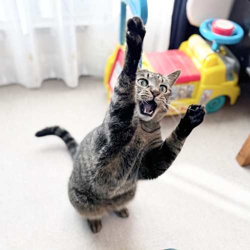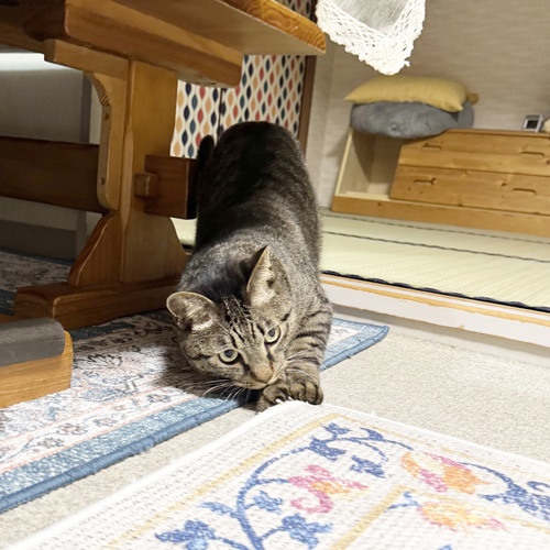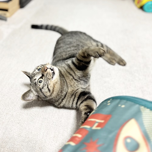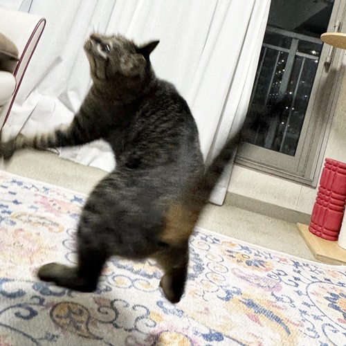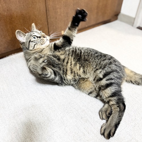 歓迎の舞や寝技で遊ぶことも多く、ほとんどの時間を転がっているぱらんちゃんですが、スイッチが入るとすごい勢いで走り去ります。笑