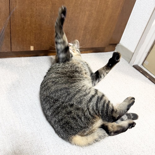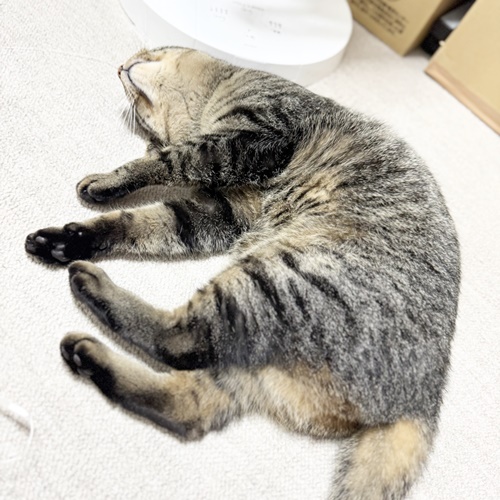 お腹出して転がっていることはよくあるぱらんちゃんですが、この体勢で寝始めたのは初めてですw