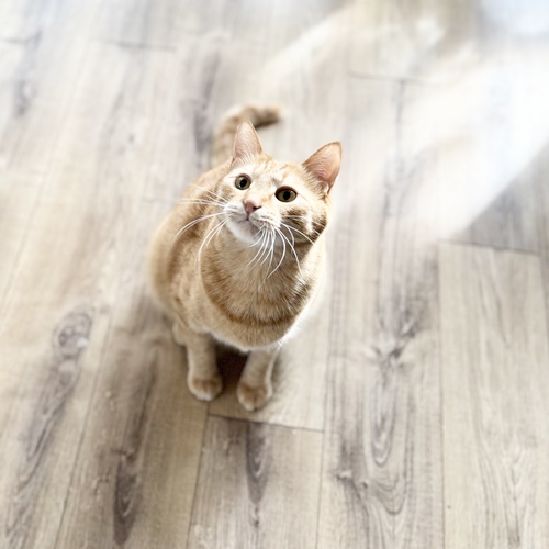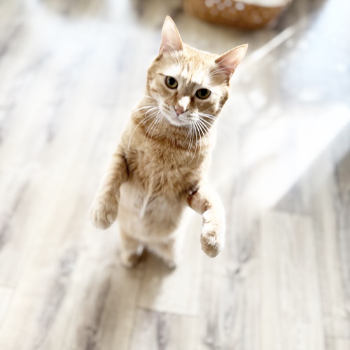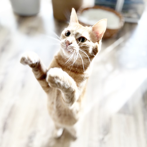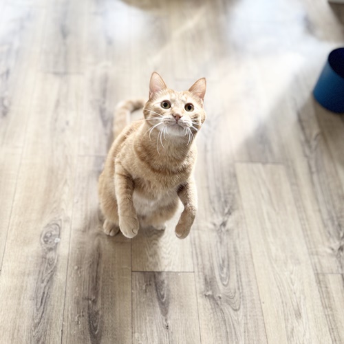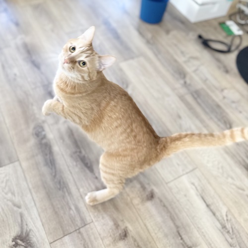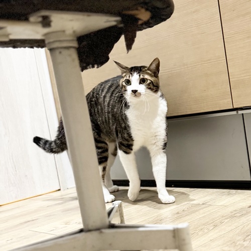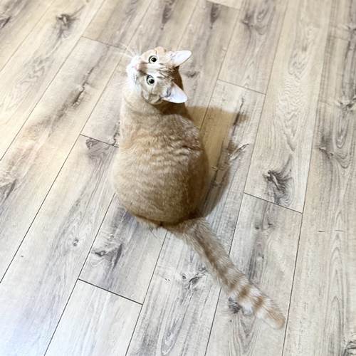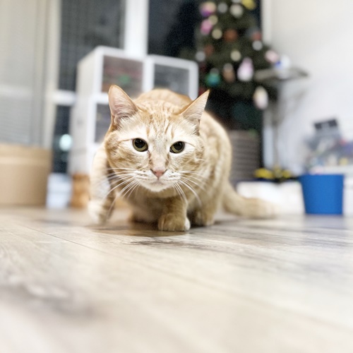 じっとしていればいいのに、わざわざゆる~っと降りてきてシッターの横を走り抜けるアオちゃんです。