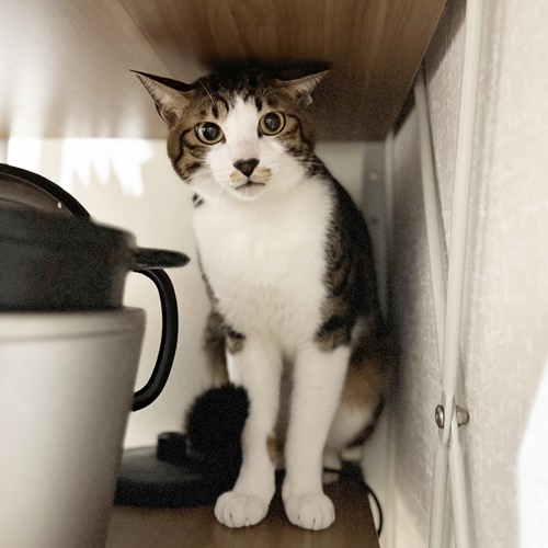 お高いところにお隠れアオちゃん、見つけちゃってごめんね~。