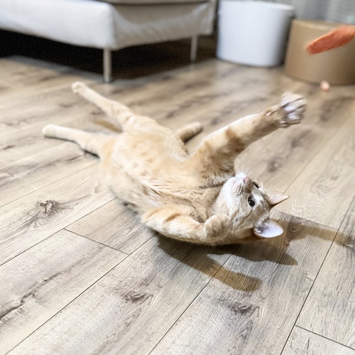 いらっしゃーい!と転がってオモチャで遊んでドッテーンと転がってナデて~と転がって。笑