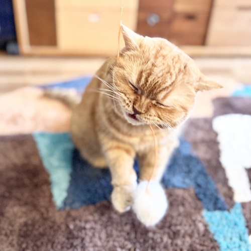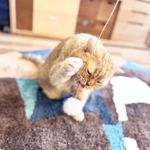 今回もシッターに付き合ってポンポンで遊んでくれるロアさん。