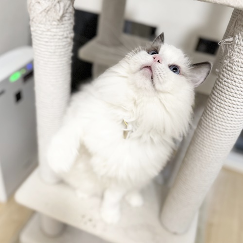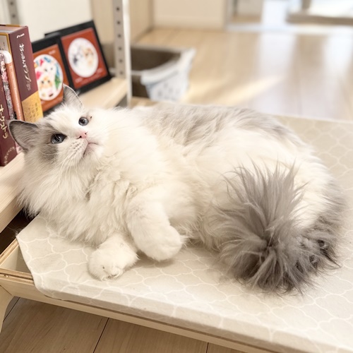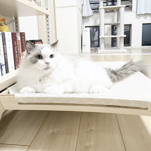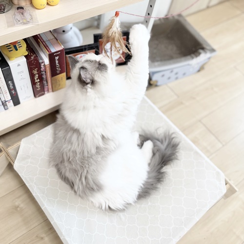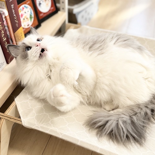 はっちゃんはオモチャで遊んでお気に入りハンモックで休憩しておりました。