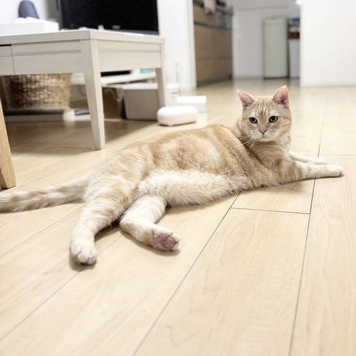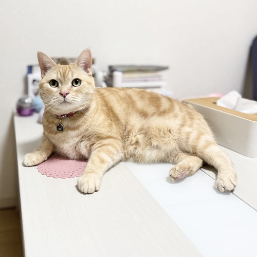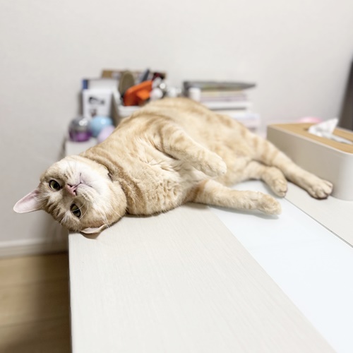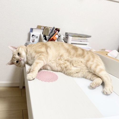 デコちゃんはテーブルの上でウネウネします。