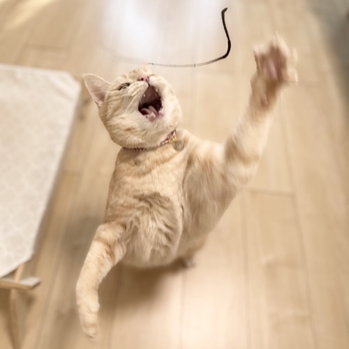 キッチンで流水も堪能してオモチャでもしっかり遊んだデコちゃんです。