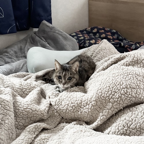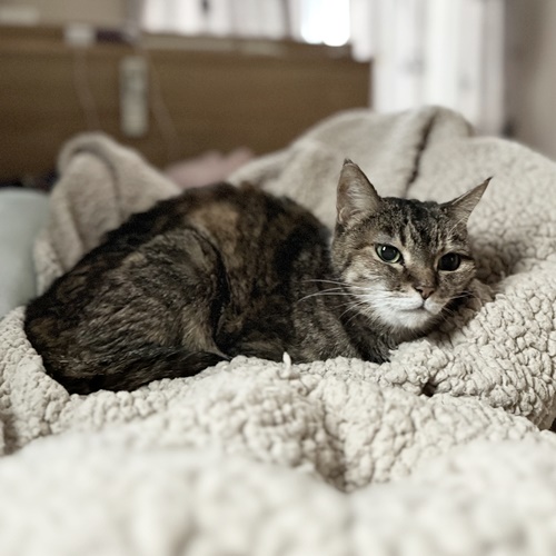 ハイシニアさん(推定19歳!)の凛ちゃん、獣医さんからは目もあまり見えていないかもと言われたそうですが、しっかりとシッターの作業を見守り、おしゃべりもしてくれました。